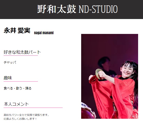 その後、ファンの調べによって、彼女は「野和太鼓 ND-STUDIO」に所属する永井愛美ではないか?とする予測を、最近になって多く目にするようになりました。