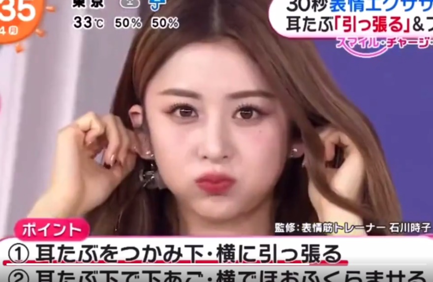 その後、7時台に生パフォーマンスを披露する前に、短いながら印象に残るシーンがありました。その日に番組で紹介された、耳たぶを引っ張りながらふくれっ面をする「表情エクササイズ」をメンバーが実践して見せたのですが、これがとても可愛かったのです。